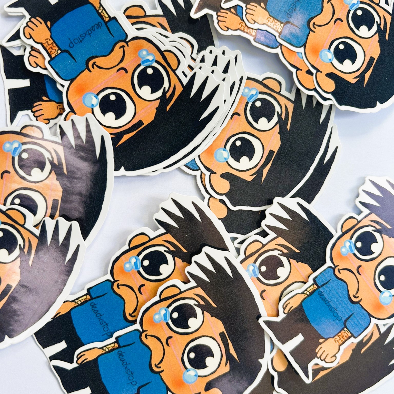 Do you feel there needs to be more love for Chris in the FOB fandom? Well this little guy thinks so too; just look at his face! Now you can own the blubbering face of Mr. Deadxstop himself in 2.5 in of glossy glory… In reality, this drawing is based off an old Livejournal audio file of his where he describes a trip to the Louvre in which seeing the Mona Lisa made him cry.